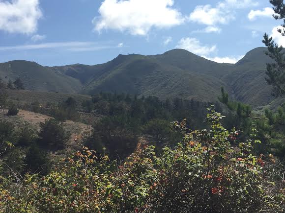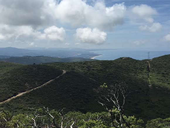 On the fire road, looking up a few miles and about 2,000 vertical feet to the top of Montara Mountain.