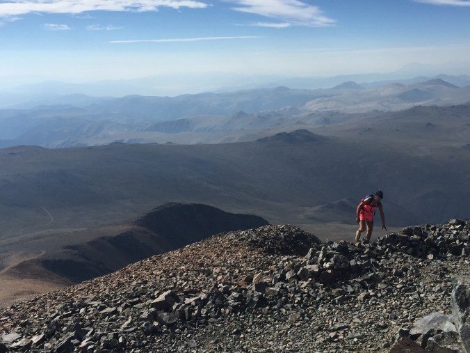 Before we knew it, we were on top! Most notably, we were impressed that it wasn’t as cold on the summit as we expected. Everyone we’d passed throughout the day (3 different groups) were bundled up in pants and jackets, while we skipped along in hot pink shorts and tank tops. We were lucky enough to have a thin cloud coverage all day, so we were shaded from the 100 degree heat infecting the valley.