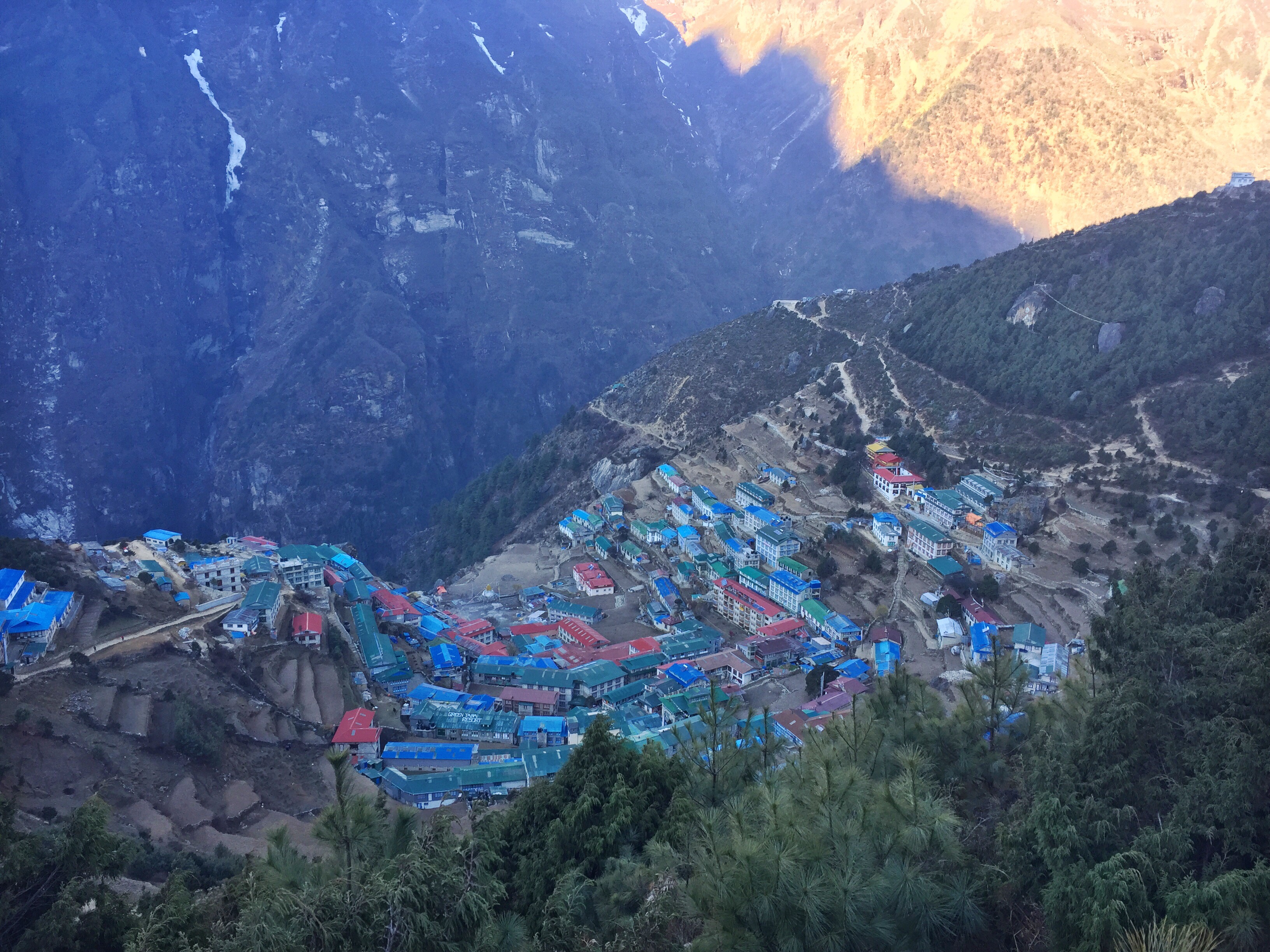 Namche Bazaar is an impressively large village spread out over a corner of the Khumbu Valley. We hear that the entire village was created from the economy generated by Everest climbers, and I believe it. Endless shops dotting the main route sell mountaineering books, high-altitude medications, cold weather gear, and any type of toiletry, snack, or delicacy you could imagine. This is one of, if not the only, village where you’ll find a half a dozen bars with Asian beers, American cocktails, Italian wines, and everything in between.