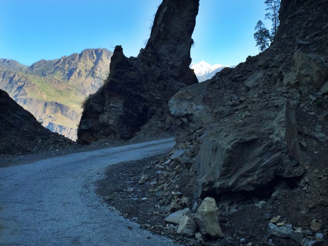 The day began with an annoying hike along the road. Luckily it was early enough where I didn’t see much traffic, but unluckily the road widened and shrank to barely a car’s width, so when towering trucks roared past at full-speed downhill, I jumped out of their way by dangling on rocks overlooking the hillside cliff. When I finally reached the trail, I was stopped by locals who discouraged me each time and told me to take a lower route.