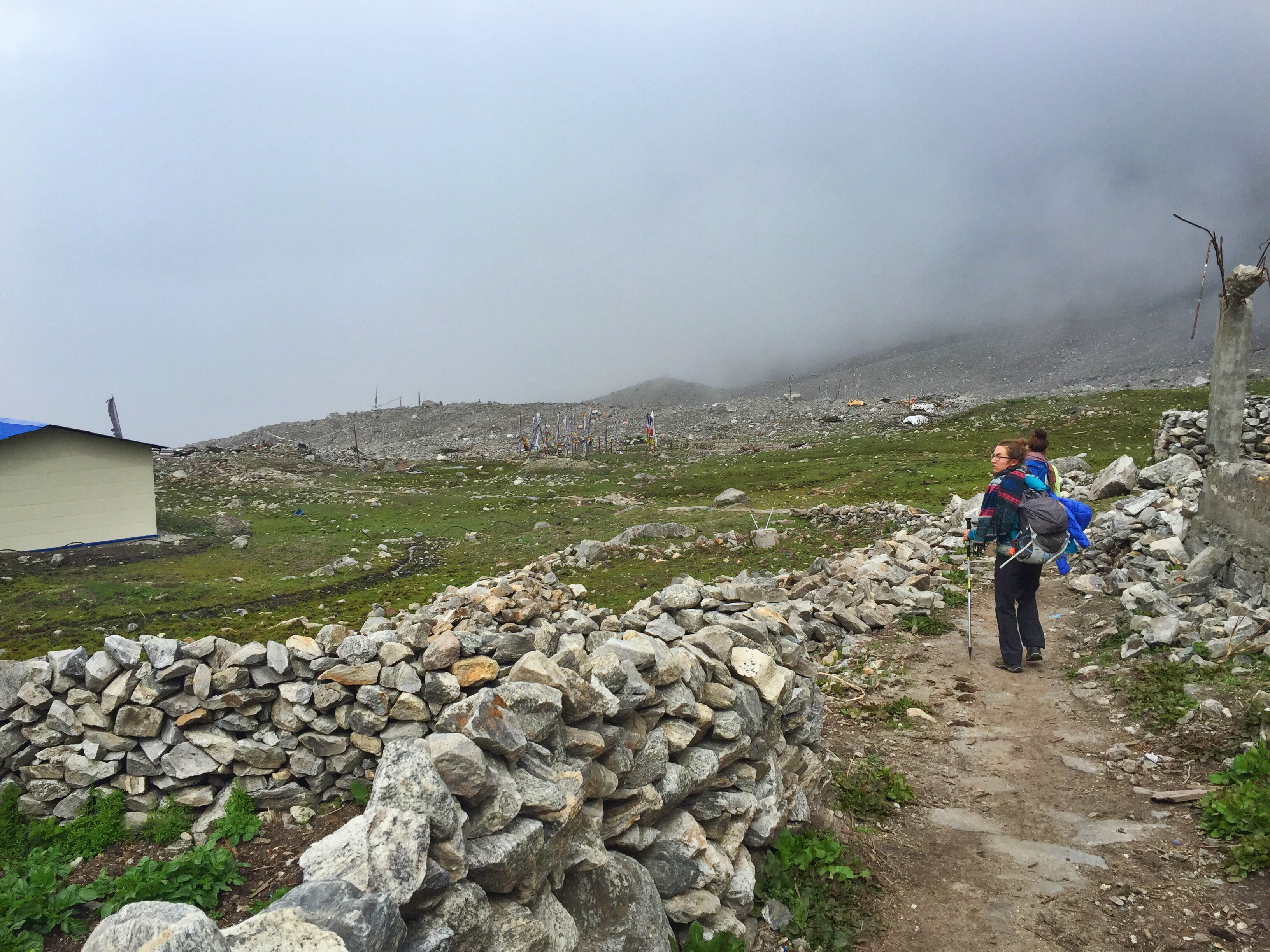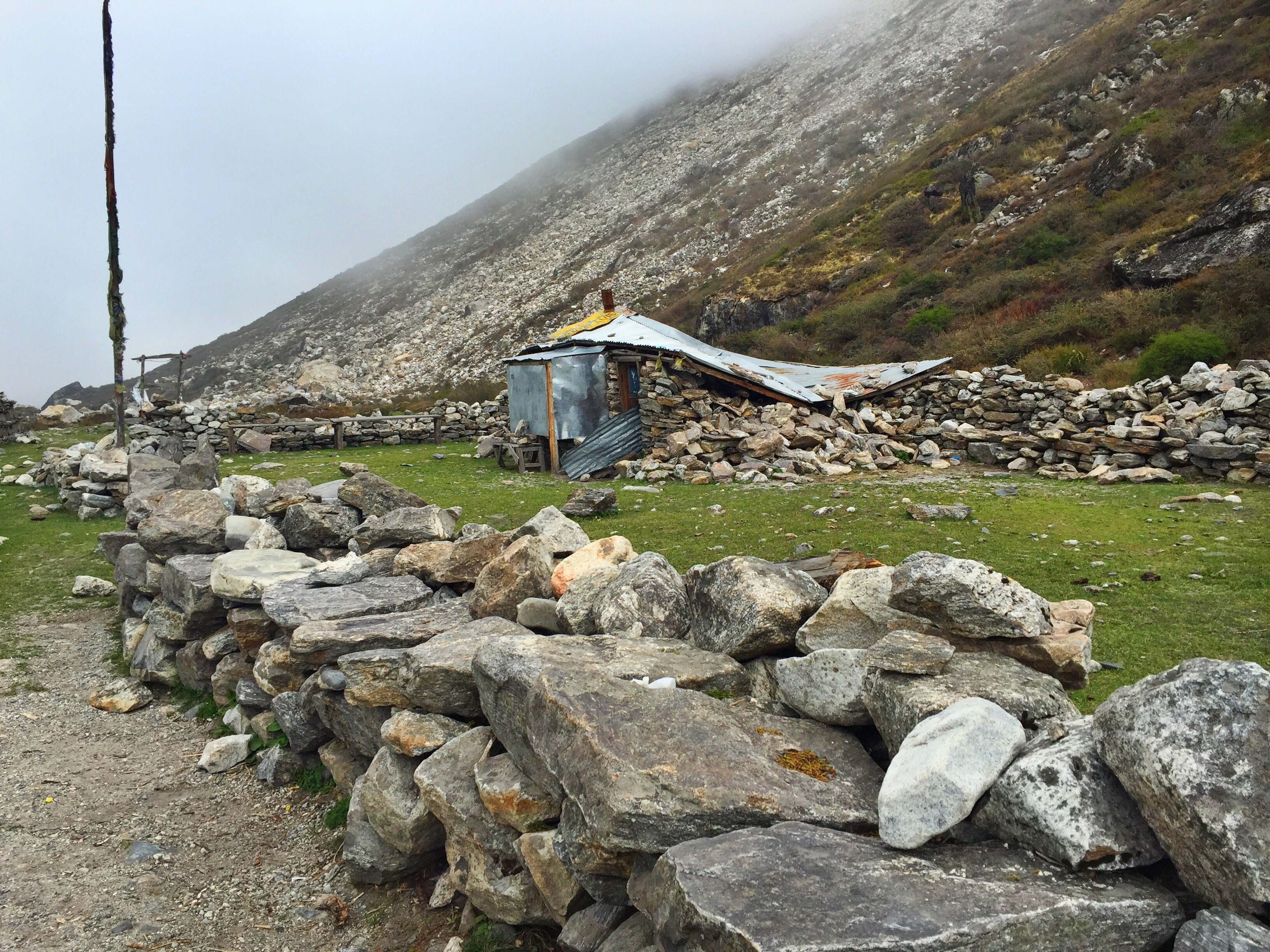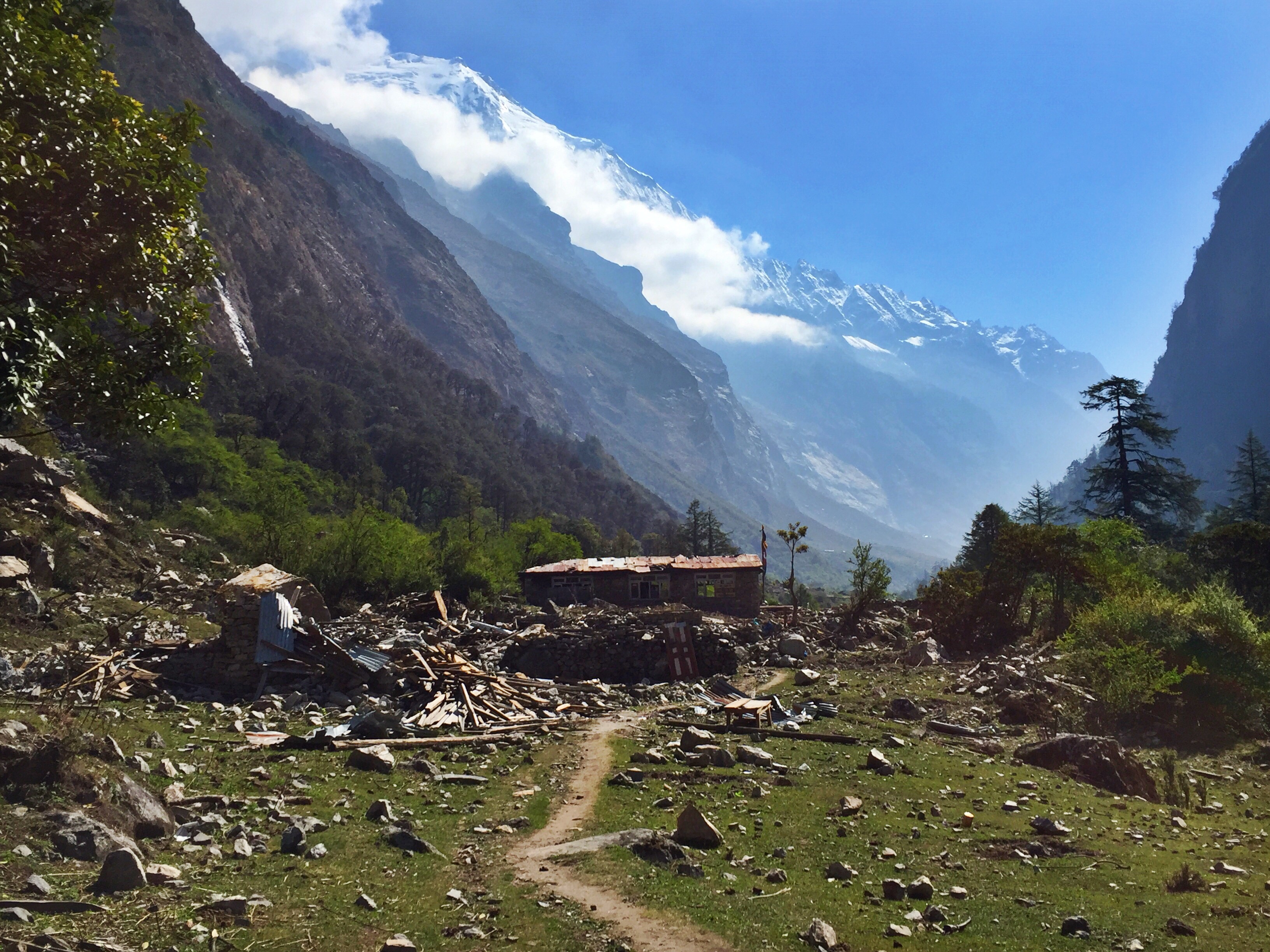 I’d walked over landslide-swept trails and some small ruins of buildings the day before, but nothing could prepare me for what I’d see today. Langtang Valley was THE most badly affected trekking area hit by the earthquake last year, with hundreds of people losing their lives, and thousands more forced to rebuild theirs. The very first village I passed was on the map, but was not on the trail any longer. A smashed building stood in its placed, gigantic rocks having rolled up around its base, with broken glass, bent frames, and splintered wood scattering a huge field.
