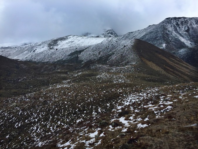 I did not encounter a single other person on the trail during my 7 hour day, which ended up as one of the reasons I used to turn around early. After four hours of hard, fast hiking, I came upon a wide, open field with peaks standing in every direction. I’d long lost the trail by then, and there was no clear direction as to which was Cherko Ri. Instead of wasting my breath and energy wandering through the snow, I decided to turn around.